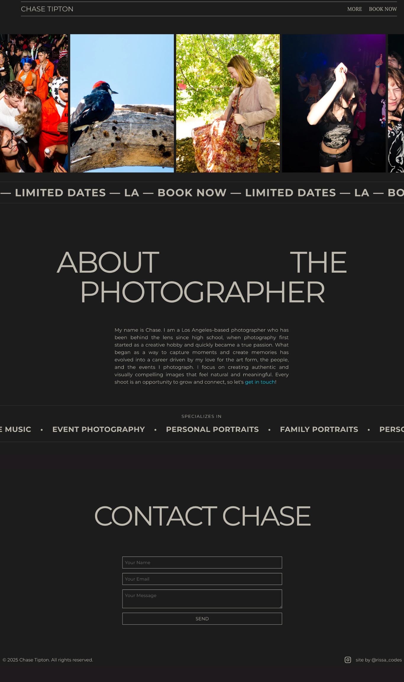 Chase wanted a portfolio that felt urban, bold, and reflective of his work—capturing the energy and grit of Los Angeles through a modern, immersive web experience. The site was also optimized for SEO to help Chase appear in search results for LA photographers.